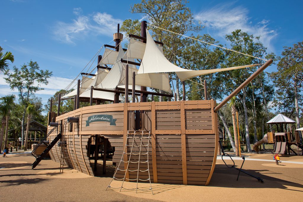 Hilton Head Island boasts an array of recreational parks and community parks, but Lowcountry Celebration Park near Coligny Plaza emerges as an undisputed favorite for the kids. This dynamic destination playground features a 1,400 square-foot Adventure ship playground mimicking Captain William Hilton’s vessel, loaded with climbers, slides, tunnels, misting cannons, interactive activity panels, and more! Just a short stroll away, families can extend their adventure to the sun-kissed shores of Coligny Beach Park, as well as shops, restaurants, and family fun at Coligny Plaza.